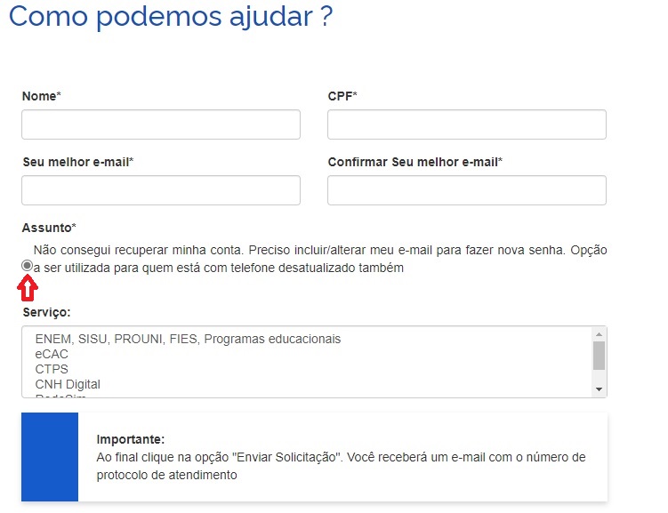 Se não tiver mais acesso aos cadastros de: E-mail, ou celular, por exemplo , pode ser solicitada uma nova senha